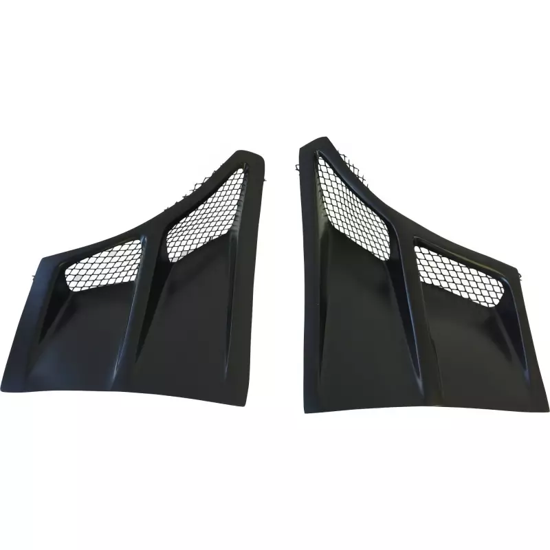 This is a FF Fender Ducts manufactured or distributed by VSaero primarily made of FRP material. VSaero FRP parts are manufactured with fiberglass and plastic resin which strengthens (F)iber (R)einforced (P)lastic. Using FRP allows VSaero to form aggressive styles of various sizes or shapes while still retaining a large degree of strength. When installing new unpainted and unfinished fiberglass parts there may be cracks or surface imperfections that need filled and/or leveled. This should be fixed in the prep stage of installation at a professional body shop. Bolts, screws, and double sided tape are not included. All fiberglass parts require modification, shaving, sanding, drilling, filling in order to ensure proper fitment.