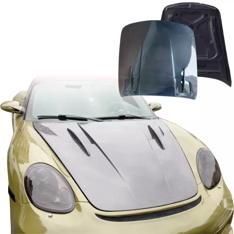 This is a MDES Hood Frunk (front) manufactured or distributed by ModeloDrive with Carbon Fiber being the primary exterior surface material. Most carbon fiber parts we sell are "wet" carbon fiber, this means they have that "wet" glossy look, the only exception to this is then the product specifically states "dry". Dry carbon is usually lighter than wet carbon but has a dull flat finish. When installing ModeloDrive Carbon Fiber parts make sure you are using hood pins on hoods and do not use hydraulic arms to prop open hoods and trunks as they can warp the light weight components over time. ModeloDrive Carbon fiber parts may require modifications such as: Drilling of holes / cutting / sanding / fixing cracks / buffing to eliminate scratches, etc. Ships direct from the manufacturer or a distributor. Manufactured with a marine gelcoat variant to help prolong the life against UV aging effects. Our Carbon Fiber parts are made with handlaid wetcarbon with plastic resin. Genuine show quality carbon reinforced with FRP fiberglass backing. Aeroparts are to be installed by a professional body shop. Bolts, screws, and double sided tape is not included. Carbon Fiber parts often have a fiberglass underside which may require modification, shaving, sanding, drilling, filling in order to ensure proper fitment.