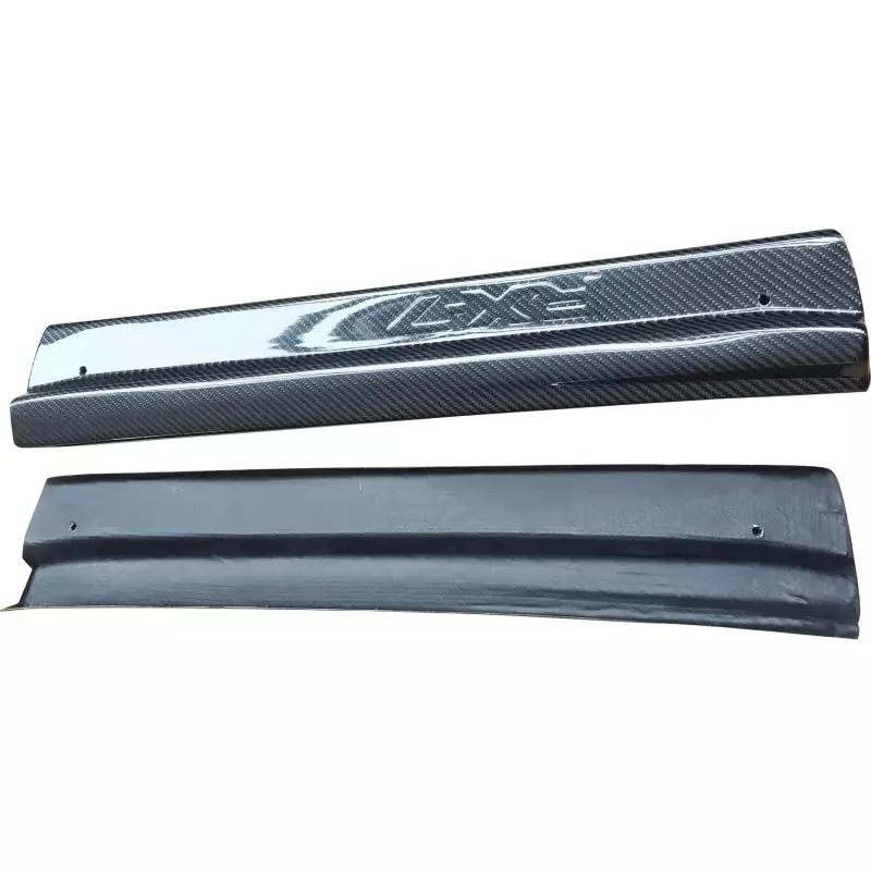 This is a OER Door Sills manufactured or distributed by ModeloDrive with Carbon Fiber being the primary exterior surface material. Most carbon fiber parts we sell are "wet" carbon fiber, this means they have that "wet" glossy look, the only exception to this is then the product specifically states "dry". Dry carbon is usually lighter than wet carbon but has a dull flat finish. When installing ModeloDrive Carbon Fiber parts make sure you are using hood pins on hoods and do not use hydraulic arms to prop open hoods and trunks as they can warp the light weight components over time. ModeloDrive Carbon fiber parts may require modifications such as: Drilling of holes / cutting / sanding / fixing cracks / buffing to eliminate scratches, etc. Ships direct from the manufacturer or a distributor. Manufactured with a marine gelcoat variant to help prolong the life against UV aging effects. Our Carbon Fiber parts are made with handlaid wetcarbon with plastic resin. Genuine show quality carbon reinforced with FRP fiberglass backing. Aeroparts are to be installed by a professional body shop. Bolts, screws, and double sided tape is not included. Carbon Fiber parts often have a fiberglass underside which may require modification, shaving, sanding, drilling, filling in order to ensure proper fitment.