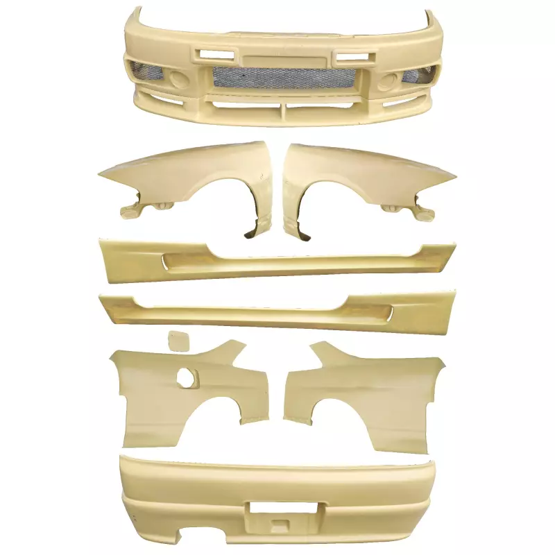 This is a 400R Wide Body GTS Conversion manufactured or distributed by ModeloDrive with FRP being the primary exterior surface material. ModeloDrive FRP (fiberglass) parts are high quality aero parts now available to the US market. ModeloDrive FRP aerodynamics have set a new standard for the fiberglass market. You may need to dry fit the parts and drill holes before prepping and finishing. Fiberglass may have cracks or surface imperfections that need filling and/or leveling. A professional body shop should fix any issues in the prep stage of installation and install the parts. You will need bolts, screws, and double sided tape, which are not included. All ModeloDrive fiberglass parts require modification, shaving, sanding, drilling, filling, cutting to ensure proper fitment but usually less than the competition.