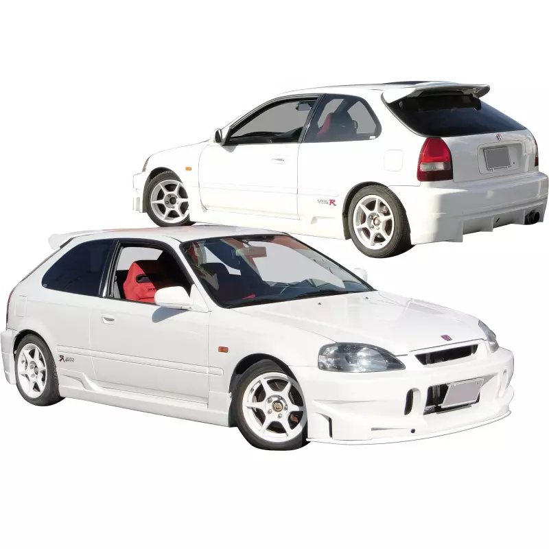 This is a BCLU Body Kit 4pc manufactured or distributed by ModeloDrive with FRP being the primary exterior surface material. ModeloDrive FRP (fiberglass) parts are high quality aero parts now available to the US market. ModeloDrive FRP aerodynamics have set a new standard for the fiberglass market. You may need to dry fit the parts and drill holes before prepping and finishing. Fiberglass may have cracks or surface imperfections that need filling and/or leveling. A professional body shop should fix any issues in the prep stage of installation and install the parts. You will need bolts, screws, and double sided tape, which are not included. All ModeloDrive fiberglass parts require modification, shaving, sanding, drilling, filling, cutting to ensure proper fitment but usually less than the competition.