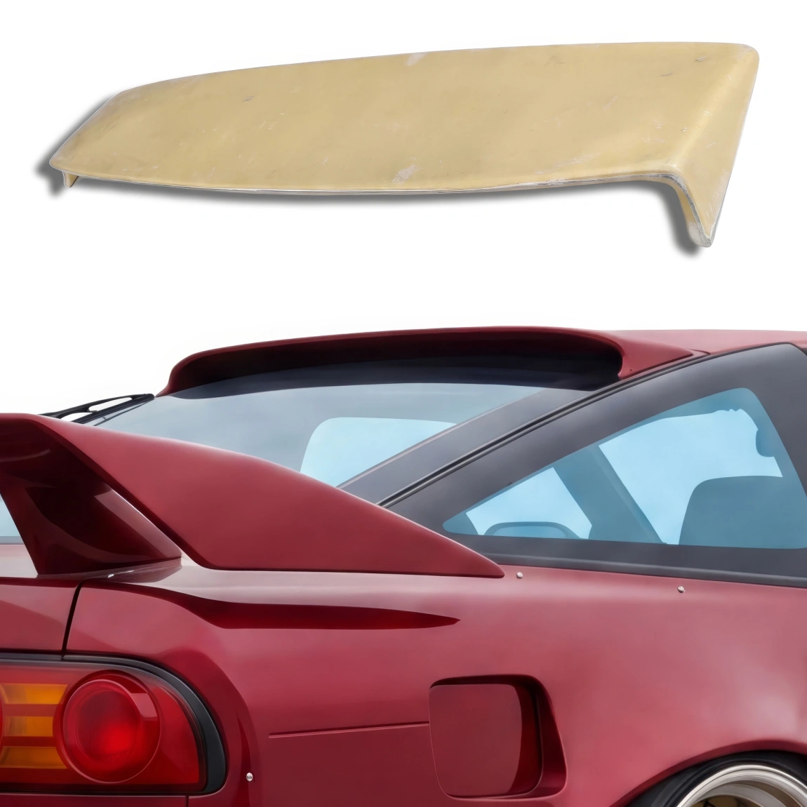 This is a BK Roof Spoiler Wing manufactured or distributed by ModeloDrive with FRP being the primary exterior surface material. ModeloDrive FRP (fiberglass) parts are high quality aero parts now available to the US market. ModeloDrive FRP aerodynamics have set a new standard for the fiberglass market. You may need to dry fit the parts and drill holes before prepping and finishing. Fiberglass may have cracks or surface imperfections that need filling and/or leveling. A professional body shop should fix any issues in the prep stage of installation and install the parts. You will need bolts, screws, and double sided tape, which are not included. All ModeloDrive fiberglass parts require modification, shaving, sanding, drilling, filling, cutting to ensure proper fitment but usually less than the competition.