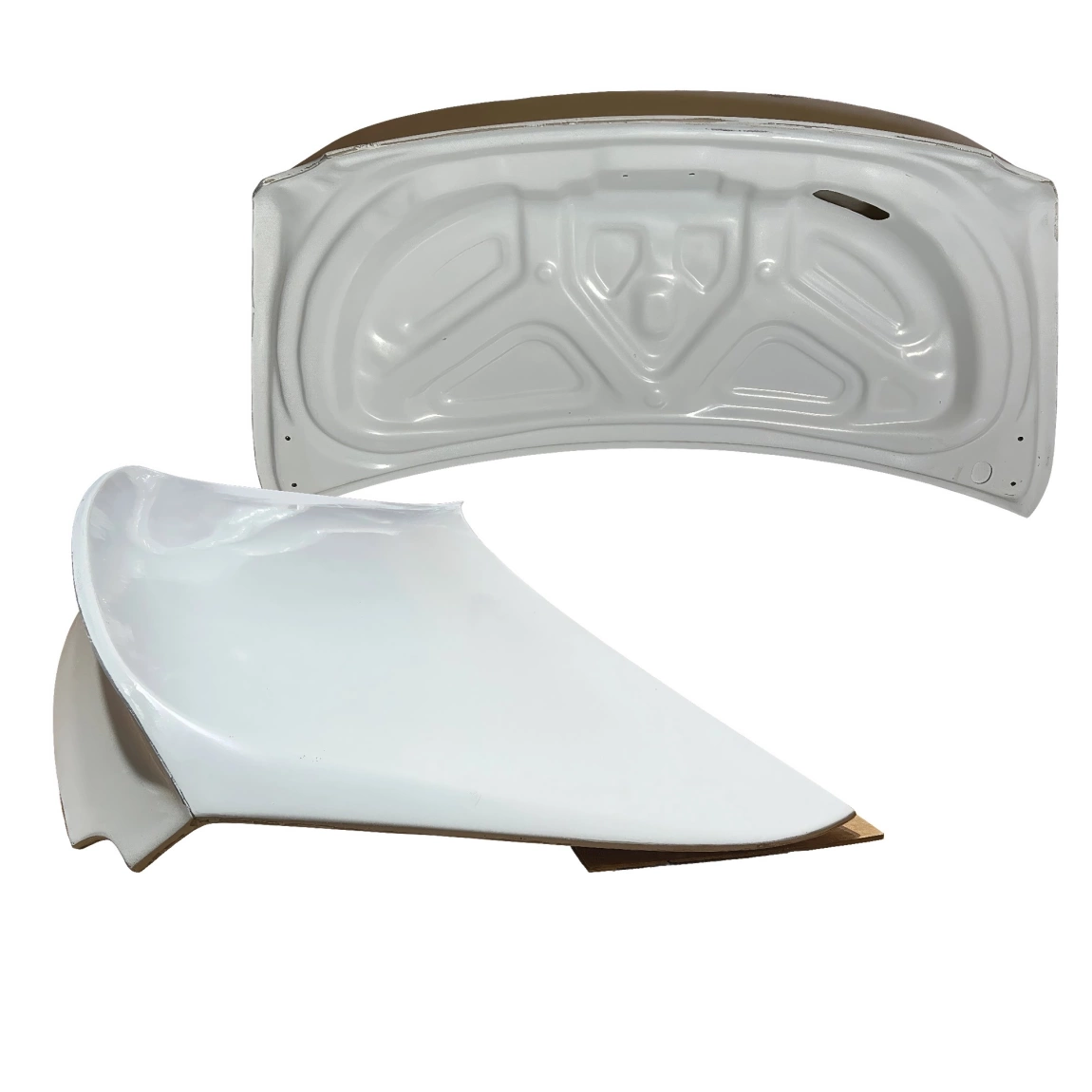 This is a CSL Duckbill Trunk manufactured or distributed by ModeloDrive with FRP being the primary exterior surface material. ModeloDrive FRP (fiberglass) parts are made to a higher standard than most mass produced US market fiberglass parts. Holes will not always be pre-drilled so you still will need to dry fit the parts before they can be prepped and finished. Due to the nature of fiberglass there may be cracks or surface imperfections that need filled and/or leveled. This should be fixed in the prep stage of installation at a professional body shop. Bolts, screws, and double sided tape is not included. All ModeloDrive fiberglass parts require modification, shaving, sanding, drilling, filling in order to ensure proper fitment but generally speaking less than the competition.