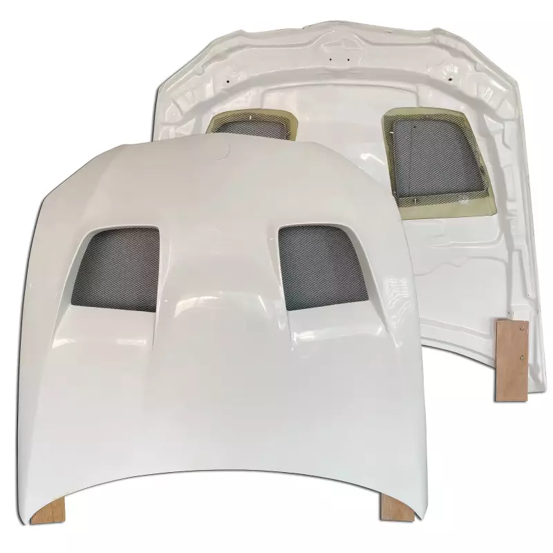 New: A brand-new, unused, unopened, item in its original packaging (where packaging is applicable). Packaging should be the same as what is found in our retail store. To be installed professionally by a bodyshop with a valid automotive repair business license. Fiberglass parts always require prep work before they can be primed and painted. This product is made with fiberglass material, therefore it will exhibit chips, breaks, cracks, waves, scratches and holes which require modification. It is necessary to dry fit and drill mounting holes and preform body work before paint. Cutting and adding of fiberglass may be required for proper fitment. Ships direct from the manufacturer or a distributor. Primer finish. Hand layup is the manufacturing process used for the majority of our fiberglass parts. Hoods require hood pins. We do not offer any guarantee of fitment on vehicles that have been in involved in accidents and/or have body damage or customization.