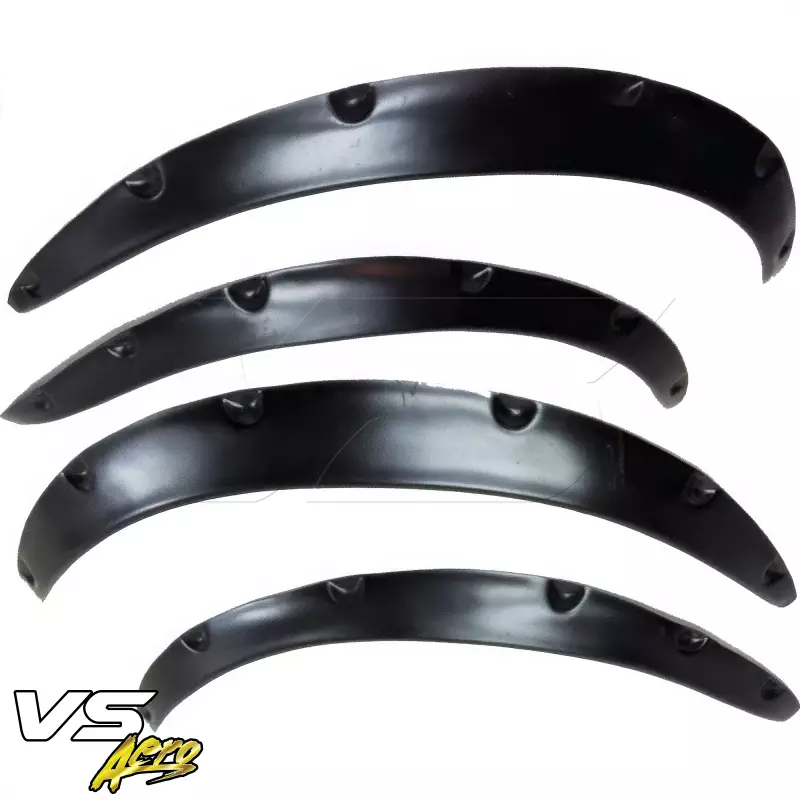 This is a DAT Wide Body Fender Flares 4pc manufactured or distributed by VSaero primarily made of FRP material. VSaero FRP parts are manufactured with fiberglass and plastic resin which strengthens (F)iber (R)einforced (P)lastic. Using FRP allows VSaero to form aggressive styles of various sizes or shapes while still retaining a large degree of strength. When installing new unpainted and unfinished fiberglass parts there may be cracks or surface imperfections that need filled and/or leveled. This should be fixed in the prep stage of installation at a professional body shop. Bolts, screws, and double sided tape are not included. All fiberglass parts require modification, shaving, sanding, drilling, filling in order to ensure proper fitment.