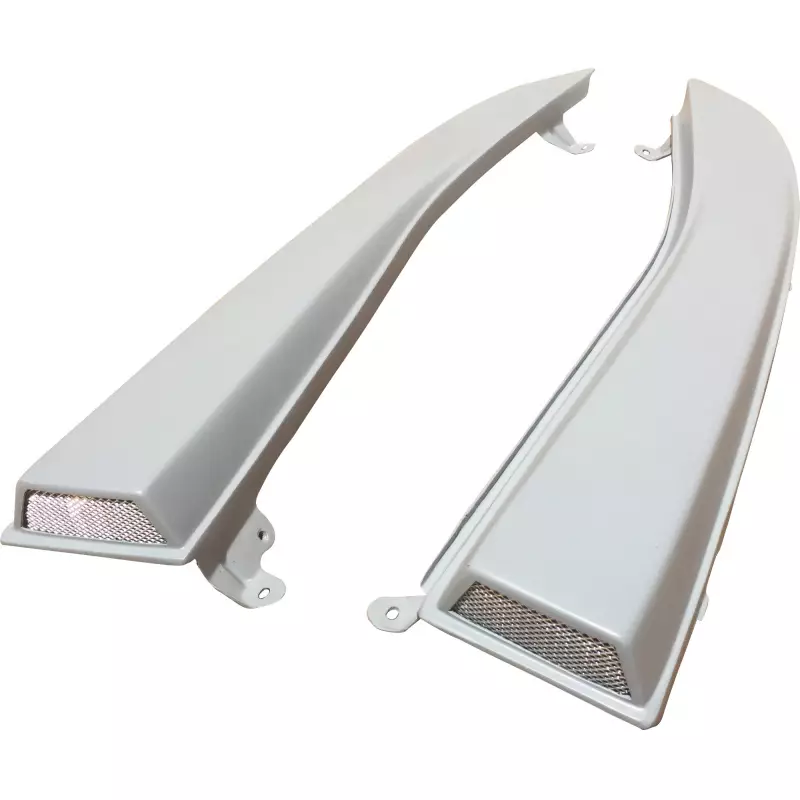 This is a DRAC Inspection Panel Scoops manufactured or distributed by VSaero primarily made of FRP material. VSaero FRP parts are manufactured with fiberglass and plastic resin which strengthens (F)iber (R)einforced (P)lastic. Using FRP allows VSaero to form aggressive styles of various sizes or shapes while still retaining a large degree of strength. When installing new unpainted and unfinished fiberglass parts there may be cracks or surface imperfections that need filled and/or leveled. This should be fixed in the prep stage of installation at a professional body shop. Bolts, screws, and double sided tape are not included. All fiberglass parts require modification, shaving, sanding, drilling, filling in order to ensure proper fitment.