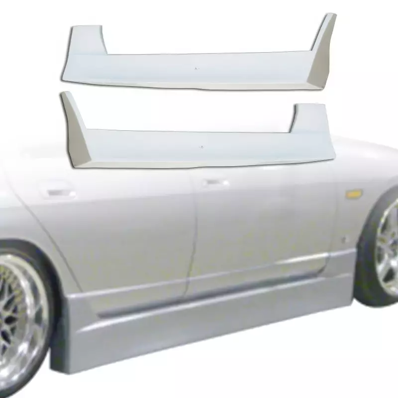 This is a FKON Side Skirts manufactured or distributed by VSaero primarily made of FRP material. VSaero FRP parts are manufactured with fiberglass and plastic resin which strengthens (F)iber (R)einforced (P)lastic. Using FRP allows VSaero to form aggressive styles of various sizes or shapes while still retaining a large degree of strength. When installing new unpainted and unfinished fiberglass parts there may be cracks or surface imperfections that need filled and/or leveled. This should be fixed in the prep stage of installation at a professional body shop. Bolts, screws, and double sided tape are not included. All fiberglass parts require modification, shaving, sanding, drilling, filling in order to ensure proper fitment.