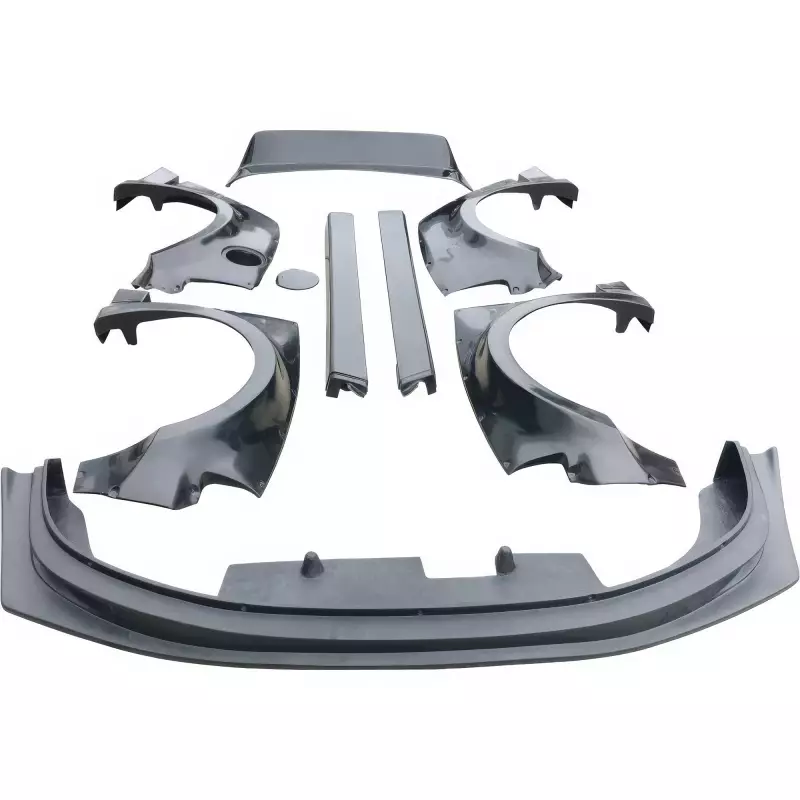 This is a MAM Wide Body Kit /w Wing 9pc manufactured or distributed by VSaero primarily made of FRP material. VSaero FRP parts are manufactured with fiberglass and plastic resin which strengthens (F)iber (R)einforced (P)lastic. Using FRP allows VSaero to form aggressive styles of various sizes or shapes while still retaining a large degree of strength. When installing new unpainted and unfinished fiberglass parts there may be cracks or surface imperfections that need filled and/or leveled. This should be fixed in the prep stage of installation at a professional body shop. Bolts, screws, and double sided tape are not included. All fiberglass parts require modification, shaving, sanding, drilling, filling in order to ensure proper fitment.