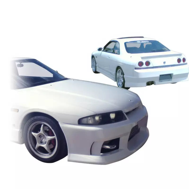 This is a MSPO v2 Body Kit 4pc manufactured or distributed by VSaero primarily made of FRP material. VSaero FRP parts are manufactured with fiberglass and plastic resin which strengthens (F)iber (R)einforced (P)lastic. Using FRP allows VSaero to form aggressive styles of various sizes or shapes while still retaining a large degree of strength. When installing new unpainted and unfinished fiberglass parts there may be cracks or surface imperfections that need filled and/or leveled. This should be fixed in the prep stage of installation at a professional body shop. Bolts, screws, and double sided tape are not included. All fiberglass parts require modification, shaving, sanding, drilling, filling in order to ensure proper fitment.