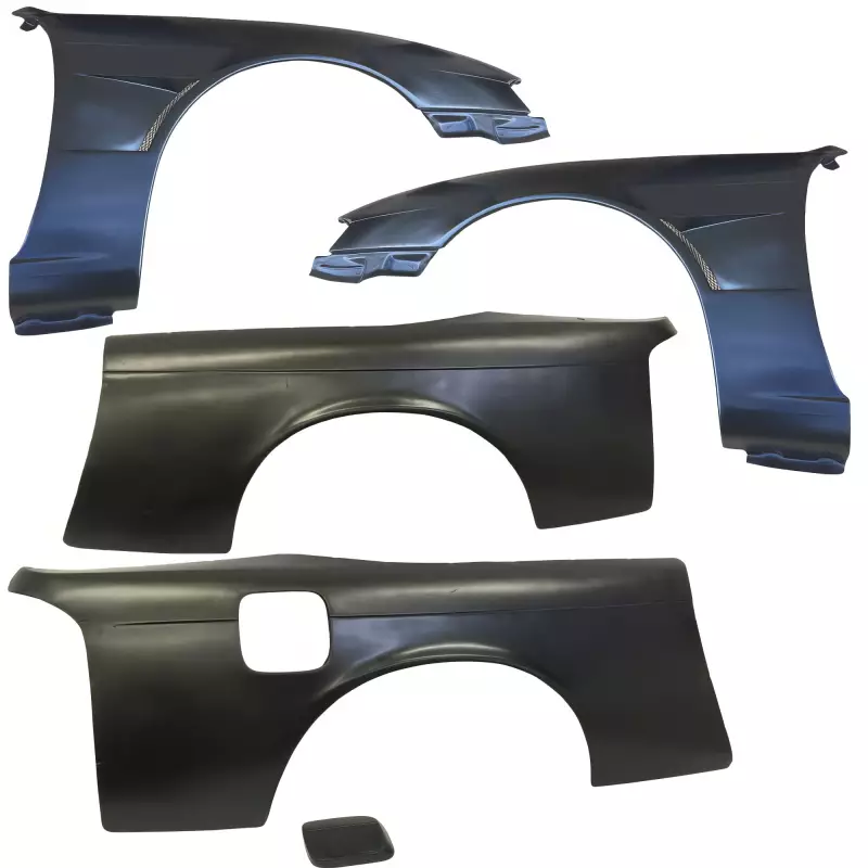 This is a MSPO Wide Body Fenders Set 25/30mm manufactured or distributed by VSaero primarily made of FRP material. VSaero FRP parts are manufactured with fiberglass and plastic resin which strengthens (F)iber (R)einforced (P)lastic. Using FRP allows VSaero to form aggressive styles of various sizes or shapes while still retaining a large degree of strength. When installing new unpainted and unfinished fiberglass parts there may be cracks or surface imperfections that need filled and/or leveled. This should be fixed in the prep stage of installation at a professional body shop. Bolts, screws, and double sided tape are not included. All fiberglass parts require modification, shaving, sanding, drilling, filling in order to ensure proper fitment.