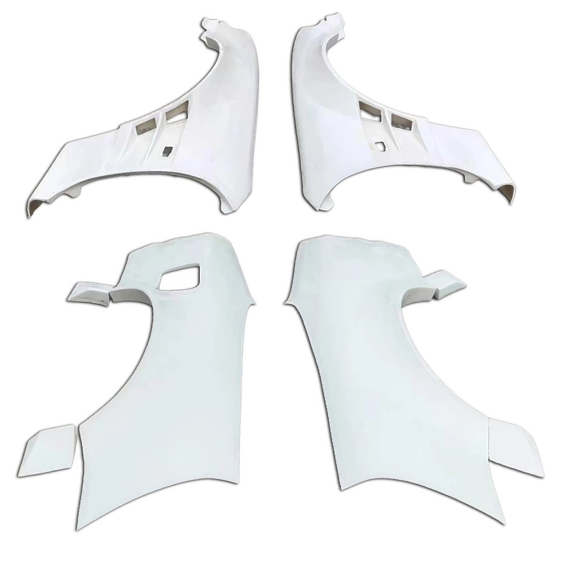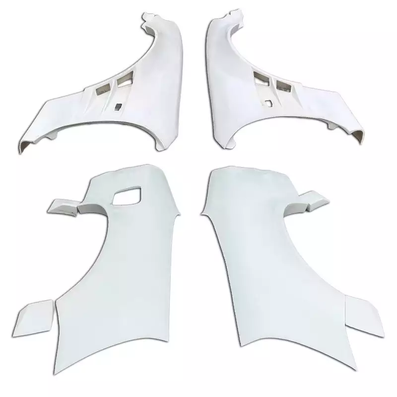 This is a ORI 75mm Fenders set manufactured or distributed by ModeloDrive with FRP being the primary exterior surface material. ModeloDrive FRP (fiberglass) parts are high quality aero parts now available to the US market. ModeloDrive FRP aerodynamics have set a new standard for the fiberglass market. You may need to dry fit the parts and drill holes before prepping and finishing. Fiberglass may have cracks or surface imperfections that need filling and/or leveling. A professional body shop should fix any issues in the prep stage of installation and install the parts. You will need bolts, screws, and double sided tape, which are not included. All ModeloDrive fiberglass parts require modification, shaving, sanding, drilling, filling, cutting to ensure proper fitment but usually less than the competition.