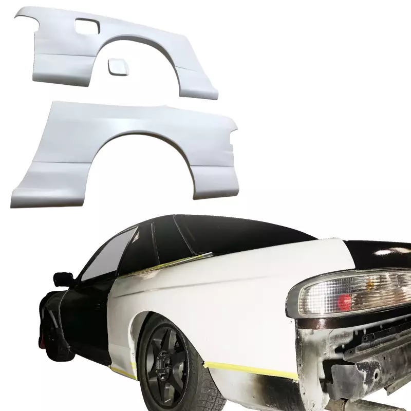 This is a ORI t2 50mm Press Wide Body Fenders (rear) manufactured or distributed by ModeloDrive with FRP being the primary exterior surface material. ModeloDrive FRP (fiberglass) parts are high quality aero parts now available to the US market. ModeloDrive FRP aerodynamics have set a new standard for the fiberglass market. You may need to dry fit the parts and drill holes before prepping and finishing. Fiberglass may have cracks or surface imperfections that need filling and/or leveling. A professional body shop should fix any issues in the prep stage of installation and install the parts. You will need bolts, screws, and double sided tape, which are not included. All ModeloDrive fiberglass parts require modification, shaving, sanding, drilling, filling, cutting to ensure proper fitment but usually less than the competition.