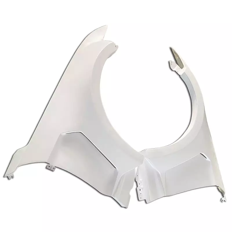 This is a RTSS Wide Body Kit w Wing manufactured or distributed by ModeloDrive with FRP being the primary exterior surface material. ModeloDrive FRP (fiberglass) parts are made to a higher standard than most mass produced US market fiberglass parts. Holes will not always be pre-drilled so you still will need to dry fit the parts before they can be prepped and finished. Due to the nature of fiberglass there may be cracks or surface imperfections that need filled and/or leveled. This should be fixed in the prep stage of installation at a professional body shop. Bolts, screws, and double sided tape is not included. All ModeloDrive fiberglass parts require modification, shaving, sanding, drilling, filling in order to ensure proper fitment but generally speaking less than the competition.