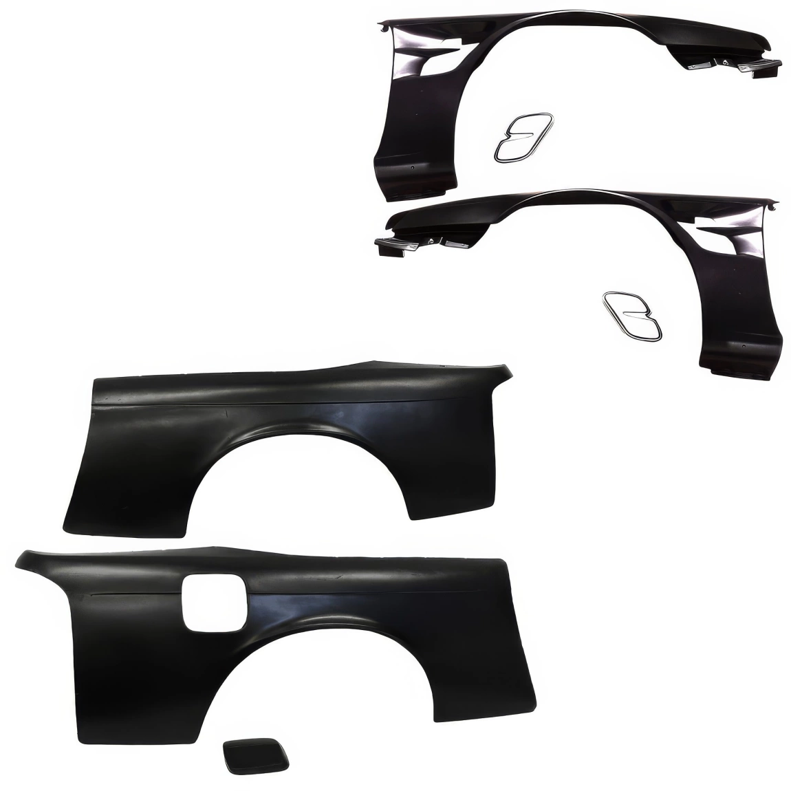 This is a SMAD Wide Body Fenders Set 30/30mm manufactured or distributed by VSaero primarily made of FRP material. VSaero FRP parts are manufactured with fiberglass and plastic resin which strengthens (F)iber (R)einforced (P)lastic. Using FRP allows VSaero to form aggressive styles of various sizes or shapes while still retaining a large degree of strength. When installing new unpainted and unfinished fiberglass parts there may be cracks or surface imperfections that need filled and/or leveled. This should be fixed in the prep stage of installation at a professional body shop. Bolts, screws, and double sided tape are not included. All fiberglass parts require modification, shaving, sanding, drilling, filling in order to ensure proper fitment.