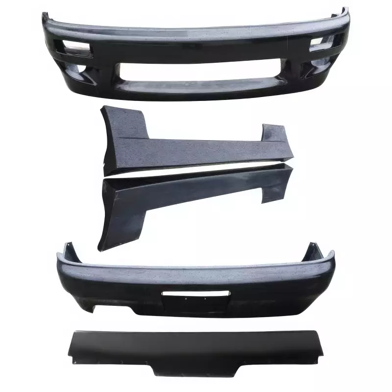 This is a TKYO v1 Body Kit w Wing 5pc manufactured or distributed by VSaero primarily made of FRP material. VSaero FRP parts are manufactured with fiberglass and plastic resin which strengthens (F)iber (R)einforced (P)lastic. Using FRP allows VSaero to form aggressive styles of various sizes or shapes while still retaining a large degree of strength. When installing new unpainted and unfinished fiberglass parts there may be cracks or surface imperfections that need filled and/or leveled. This should be fixed in the prep stage of installation at a professional body shop. Bolts, screws, and double sided tape are not included. All fiberglass parts require modification, shaving, sanding, drilling, filling in order to ensure proper fitment.