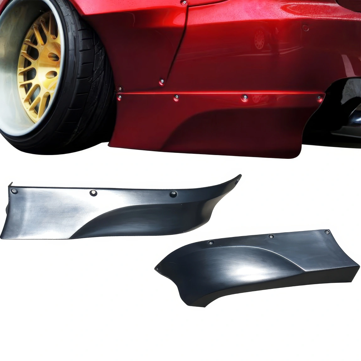 NOTES: Fitting on a convertible REQUIRES MODIFICATION to the rear fenders, especially the gas door opening. You must already have the M3 side skirts to fit the kit properly.