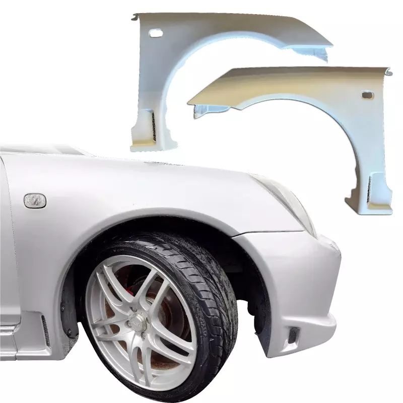 This is a TR-VM80 Wide Body Fenders (front) manufactured or distributed by ModeloDrive with FRP being the primary exterior surface material. ModeloDrive FRP (fiberglass) parts are high quality aero parts now available to the US market. ModeloDrive FRP aerodynamics have set a new standard for the fiberglass market. You may need to dry fit the parts and drill holes before prepping and finishing. Fiberglass may have cracks or surface imperfections that need filling and/or leveling. A professional body shop should fix any issues in the prep stage of installation and install the parts. You will need bolts, screws, and double sided tape, which are not included. All ModeloDrive fiberglass parts require modification, shaving, sanding, drilling, filling, cutting to ensure proper fitment but usually less than the competition.