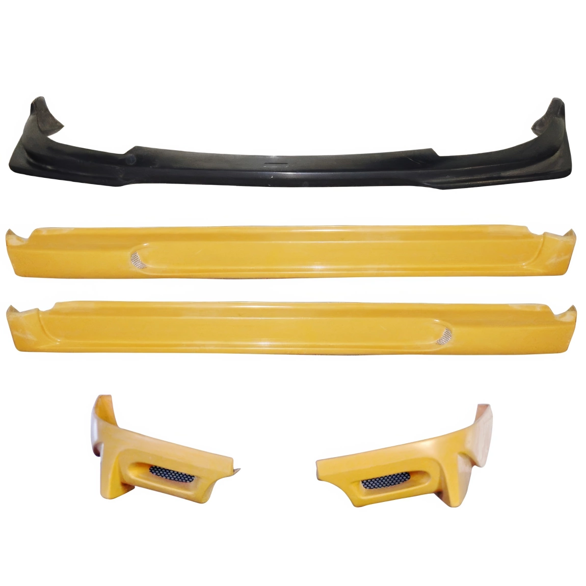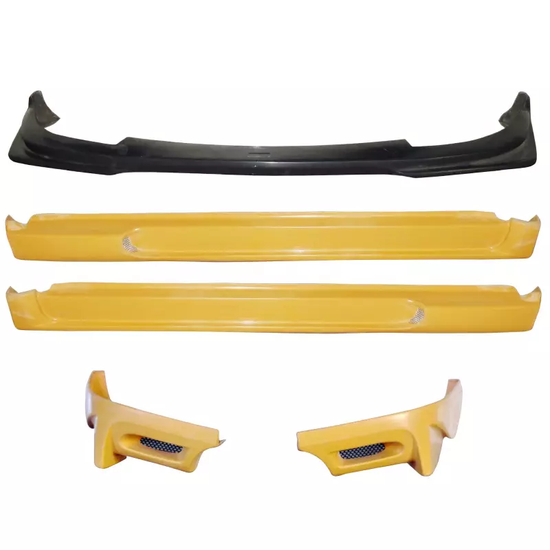 This is a VAR ING Body Kit 5pc manufactured or distributed by ModeloDrive with FRP being the primary exterior surface material. ModeloDrive FRP (fiberglass) parts are high quality aero parts now available to the US market. ModeloDrive FRP aerodynamics have set a new standard for the fiberglass market. You may need to dry fit the parts and drill holes before prepping and finishing. Fiberglass may have cracks or surface imperfections that need filling and/or leveling. A professional body shop should fix any issues in the prep stage of installation and install the parts. You will need bolts, screws, and double sided tape, which are not included. All ModeloDrive fiberglass parts require modification, shaving, sanding, drilling, filling, cutting to ensure proper fitment but usually less than the competition.