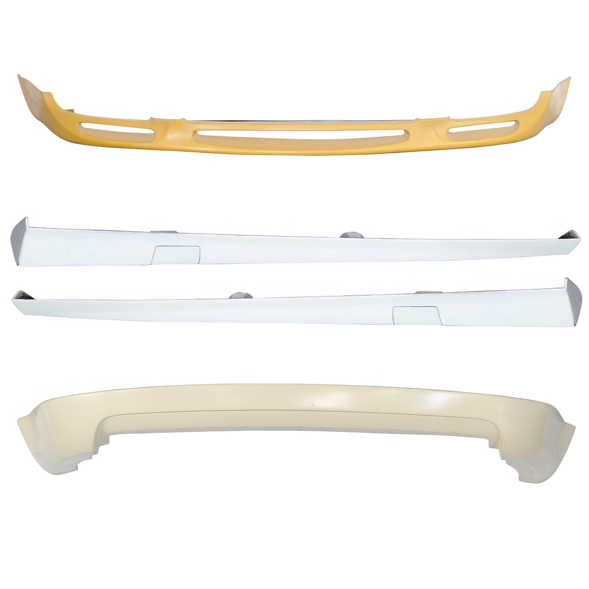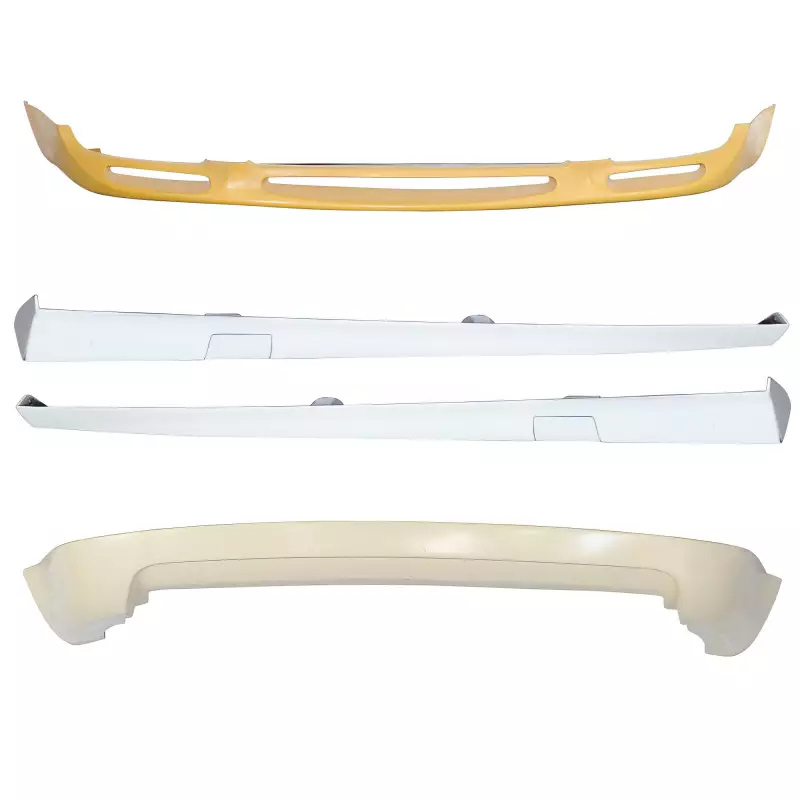This is a VOTE Body Kit 4pc manufactured or distributed by ModeloDrive with FRP being the primary exterior surface material. ModeloDrive FRP (fiberglass) parts are high quality aero parts now available to the US market. ModeloDrive FRP aerodynamics have set a new standard for the fiberglass market. You may need to dry fit the parts and drill holes before prepping and finishing. Fiberglass may have cracks or surface imperfections that need filling and/or leveling. A professional body shop should fix any issues in the prep stage of installation and install the parts. You will need bolts, screws, and double sided tape, which are not included. All ModeloDrive fiberglass parts require modification, shaving, sanding, drilling, filling, cutting to ensure proper fitment but usually less than the competition.