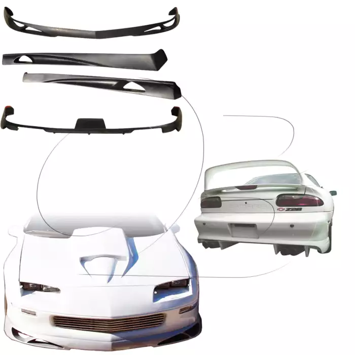 Includes the following: Chevrolet Camaro 1993-1997 Type J Style 1 Piece Polyurethane Front Lip (37-2156), Chevrolet Camaro 1993-2002 Type J Style 1 Piece Polyurethane Rear Lip (37-2157), Chevrolet Camaro 1993-2002 Type J Style 2 Piece Polyurethane Side Skirts (37-2274)
