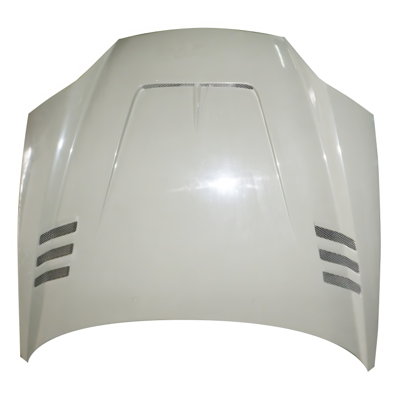 This is a PSM Hood manufactured or distributed by ModeloDrive with FRP being the primary exterior surface material. ModeloDrive FRP (fiberglass) parts are high quality aero parts now available to the US market. ModeloDrive FRP aerodynamics have set a new standard for the fiberglass market. You may need to dry fit the parts and drill holes before prepping and finishing. Fiberglass may have cracks or surface imperfections that need filling and/or leveling. A professional body shop should fix any issues in the prep stage of installation and install the parts. You will need bolts, screws, and double sided tape, which are not included. All ModeloDrive fiberglass parts require modification, shaving, sanding, drilling, filling, cutting to ensure proper fitment but usually less than the competition.