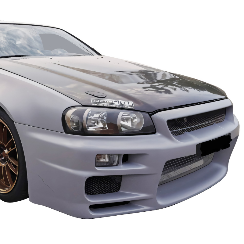 This is a TSEC Front Bumper manufactured or distributed by ModeloDrive with FRP being the primary exterior surface material. ModeloDrive FRP (fiberglass) parts are made to a higher standard than most mass produced US market fiberglass parts. Holes will not always be pre-drilled so you still will need to dry fit the parts before they can be prepped and finished. Due to the nature of fiberglass there may be cracks or surface imperfections that need filled and/or leveled. This should be fixed in the prep stage of installation at a professional body shop. Bolts, screws, and double sided tape is not included. All ModeloDrive fiberglass parts require modification, shaving, sanding, drilling, filling in order to ensure proper fitment but generally speaking less than the competition.