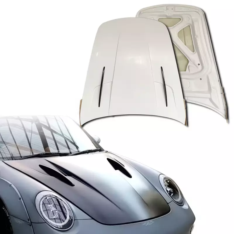 This is a MDES Hood Frunk (front) manufactured or distributed by ModeloDrive with Partial Carbon Fiber being the primary exterior surface material. Partial carbon fiber parts usually feature carbon accents in areas while the majority of the part still requires paint. The exposed carbon fiber portions are "wet" carbon fiber, this means they have that "wet" glossy look, the only exception to this is then the product specifically states "dry". Dry carbon is usually lighter than wet carbon but has a dull flat finish. When installing ModeloDrive Partial Carbon parts make sure you are using hood pins on hoods and do not use hydraulic arms to prop open hoods and trunks as they can warp the light weight components over time. ModeloDrive Partial Carbon parts may require modifications such as: Drilling of holes / cutting / sanding / fixing cracks / buffing to eliminate scratches, etc. Ships direct from the manufacturer or a distributor. Manufactured with a marine gelcoat variant to help prolong the life against UV aging effects. Our Carbon Fiber parts are made with handlaid wetcarbon with plastic resin. Genuine show quality carbon reinforced with FRP fiberglass backing. Aeroparts are to be installed by a professional body shop. Bolts, screws, and double sided tape is not included. Carbon Fiber parts often have a fiberglass underside which may require modification, shaving, sanding, drilling, filling in order to ensure proper fitment.