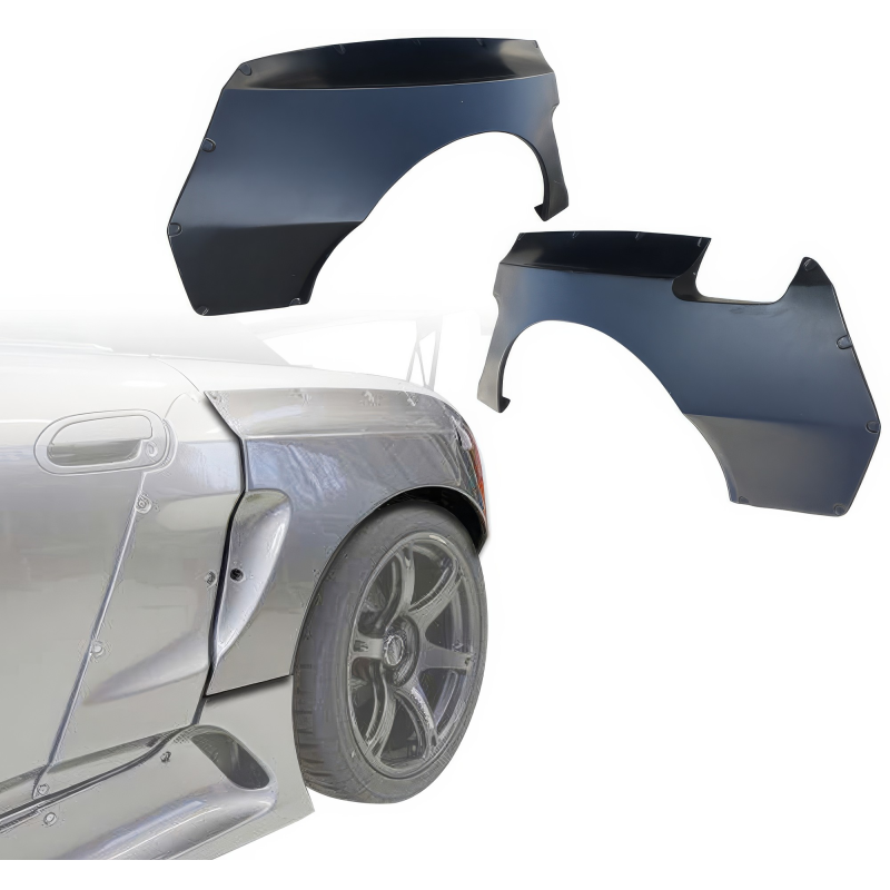 This is a TKYO Wide Body Kit w Wing manufactured or distributed by VSaero primarily made of FRP material. VSaero FRP parts are manufactured with fiberglass and plastic resin which strengthens (F)iber (R)einforced (P)lastic. Using FRP allows VSaero to form aggressive styles of various sizes or shapes while still retaining a large degree of strength. When installing new unpainted and unfinished fiberglass parts there may be cracks or surface imperfections that need filled and/or leveled. This should be fixed in the prep stage of installation at a professional body shop. Bolts, screws, and double sided tape are not included. All fiberglass parts require modification, shaving, sanding, drilling, filling in order to ensure proper fitment.